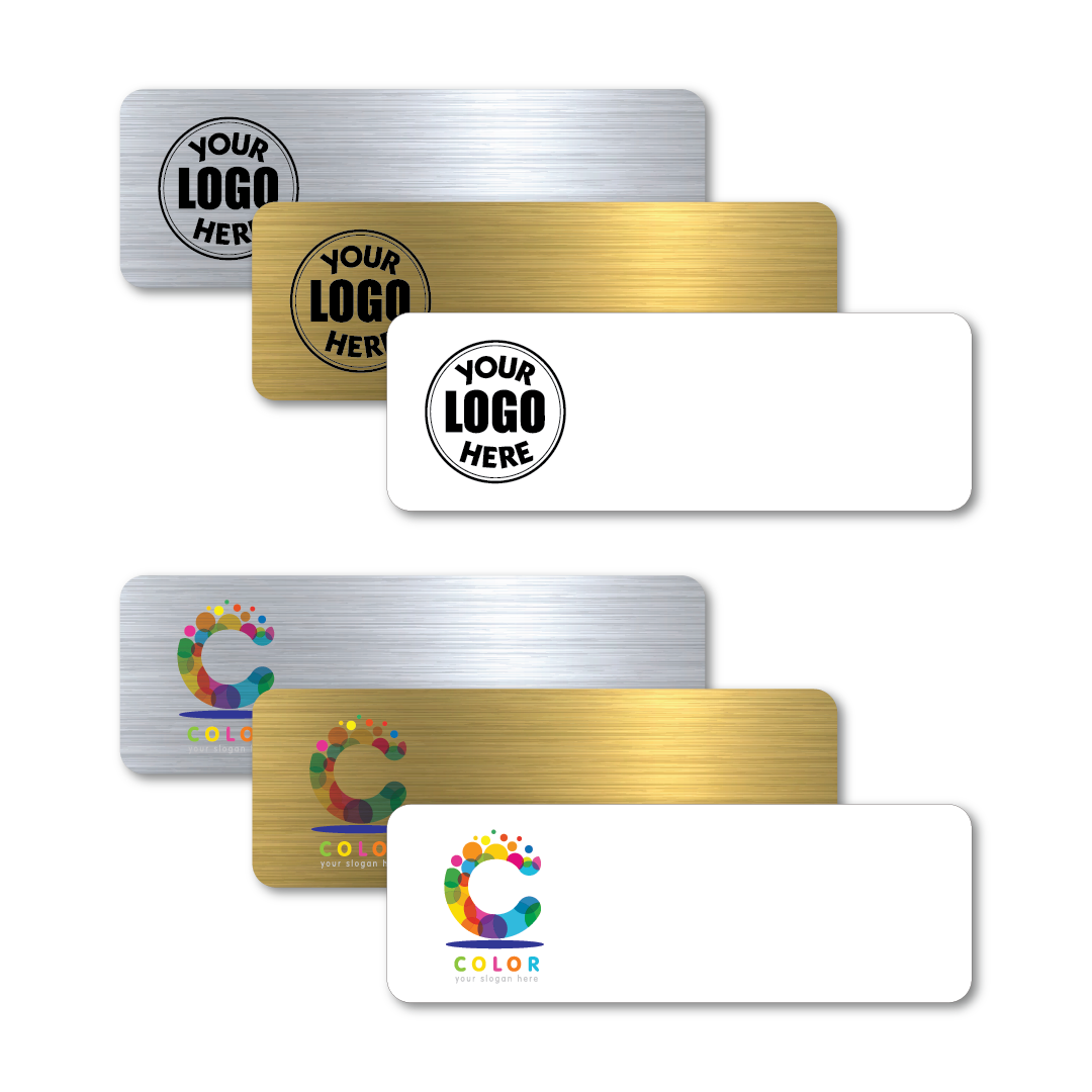 Engraved using our state-of-the-art-sublimation engraving process. These name tags feature crisp full color logos with even the most detailed logos. A designer graphically renders your design using a computer, then sends the finished design to print on a transfer paper using secialized ink. Then one of our production members attaches the transfer paper to your tag choice and uses a heat press to transfer the design into the metal. This process is called sublimation, the ink is chemically bonded with the name tag to create a permanent impression.