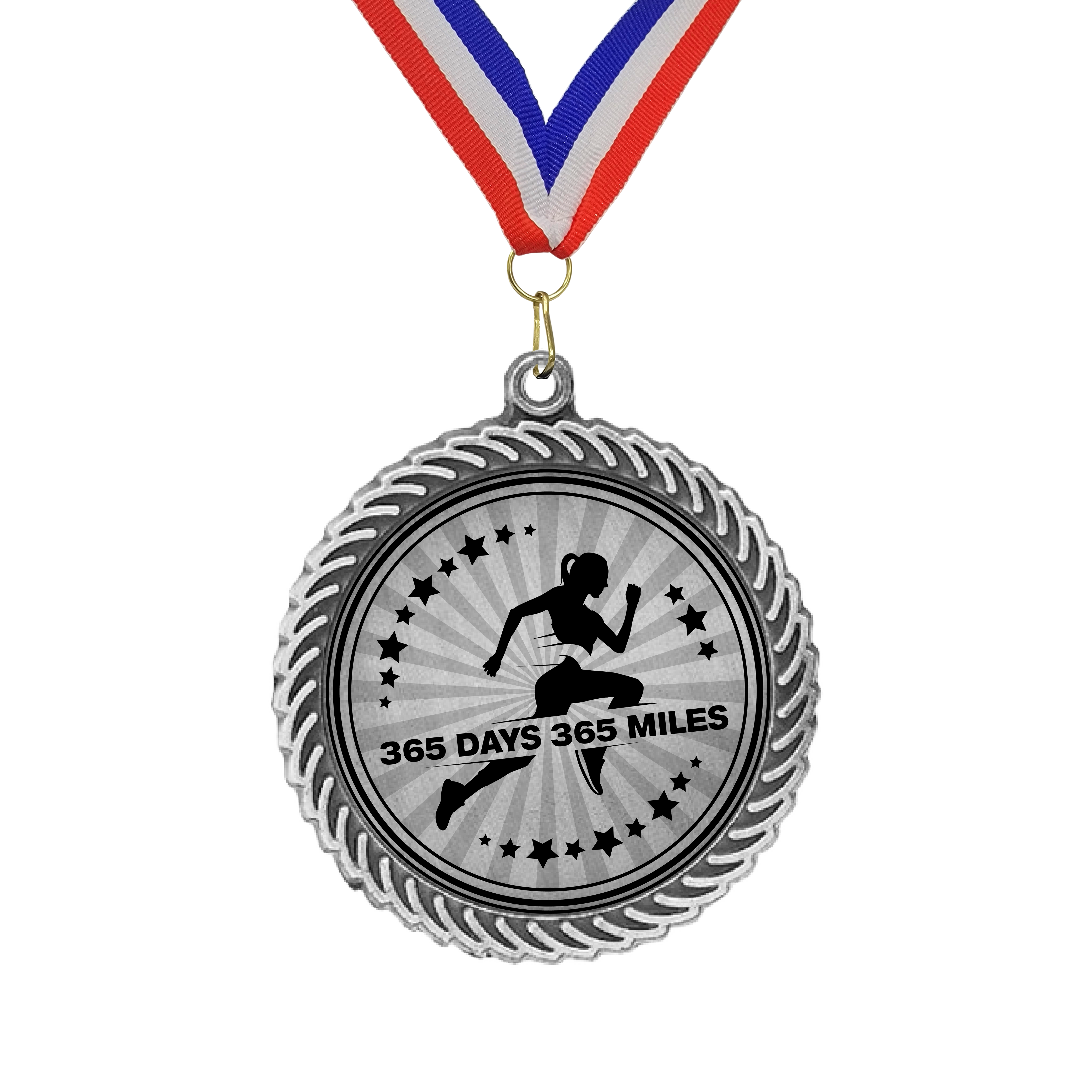We use sublimation engraving to press your design into the front of the medals. Full color graphics are accepted. The engraving on the back is etched into the metal using a diamond tip!