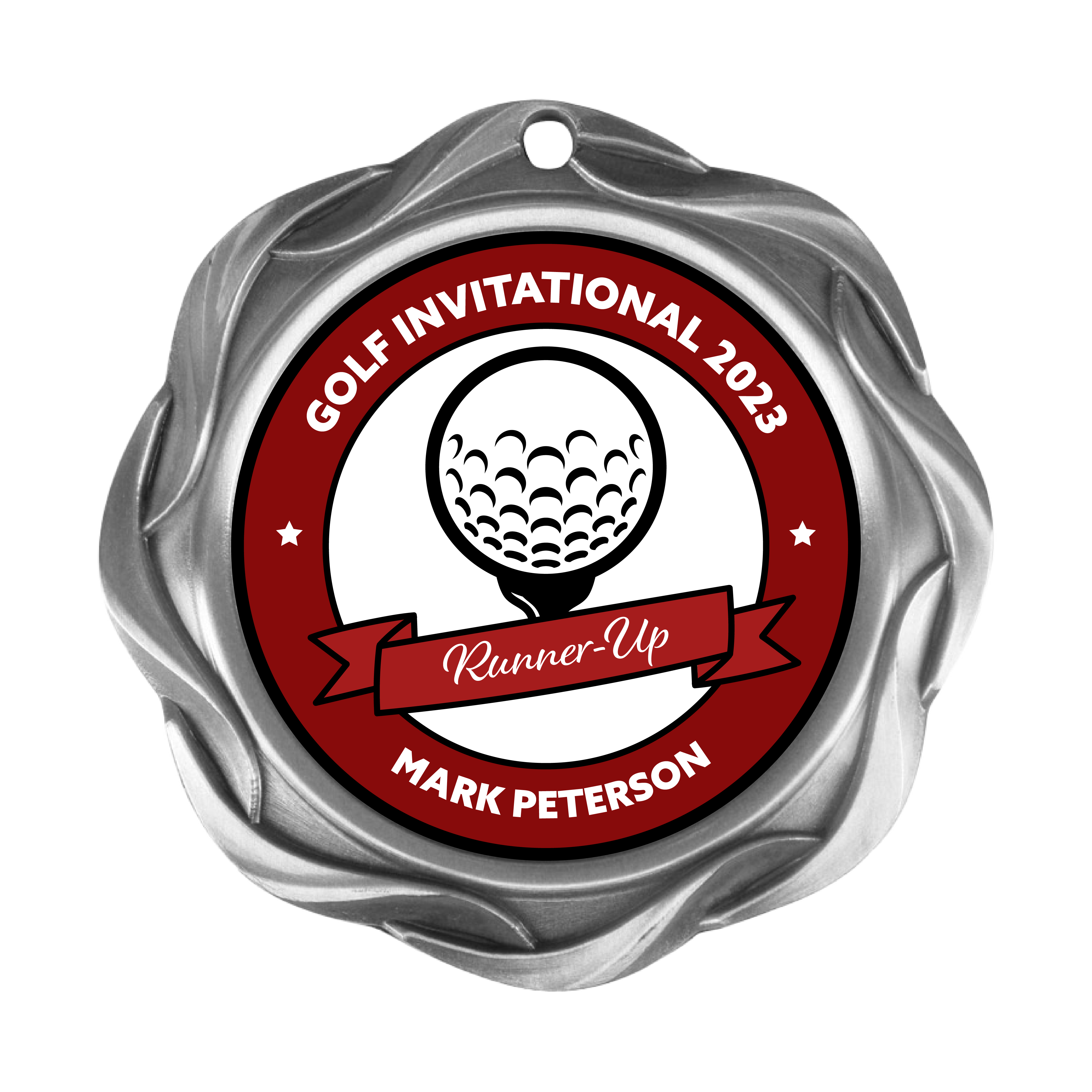 Each medal measures 3″ in diameter.  Customize your medal by choosing your color options below, uploading your custom design, and add engraving to the back to create a truly unique award.