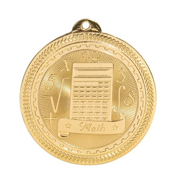 BEST PRICE ON MEDALS!!! Our standard Britelazer math medals are by far the best value. All math medals come in Gold, Silver or Bronze finishes and varying colors of neck ribbons. Engraving is optional and affordable. Great personalized medals for a price you can afford.